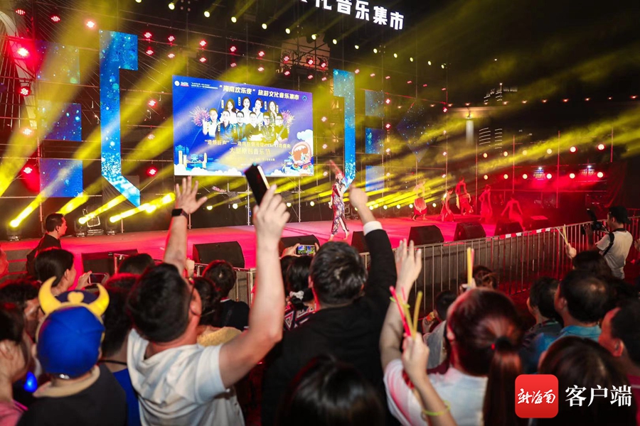 火熱!“海南歡樂夜”旅游文化音樂集市——“卡路里走廊”濱海夜市集演出熱鬧非凡。記者 姚皓 攝