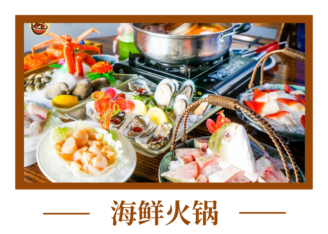 清淡的鍋底吃到最后,經(jīng)過各種魚蝦貝類涮過的鍋底就會(huì)變成一鍋海鮮濃湯。當(dāng)冷空氣碰上火熱的海鮮火鍋才是冬天的滋味。