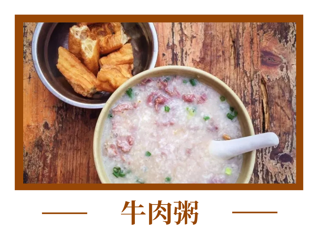 “一份牛肉粥加蛋,在這吃!”點(diǎn)一碗牛肉粥,外加標(biāo)配的油條,趁熱喝,口感粘稠順滑、牛肉味濃郁,偶爾還能嚼到里面的雞蛋。再吃塊滑嫩的牛肉,滿足~
