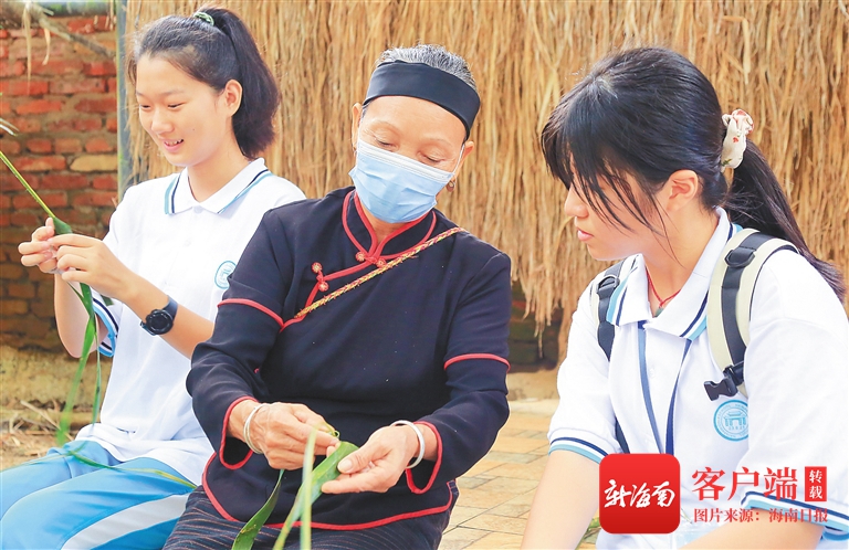 12月14日,海南中學(xué)三亞學(xué)校組織學(xué)生到海南檳榔谷黎苗文化旅游區(qū)開(kāi)展研學(xué)旅行,學(xué)生們?cè)诶枳灏⑵诺闹笇?dǎo)下學(xué)習(xí)黎族藤編。海南日?qǐng)?bào)記者 武威 通訊員 潘達(dá)強(qiáng) 圖/文