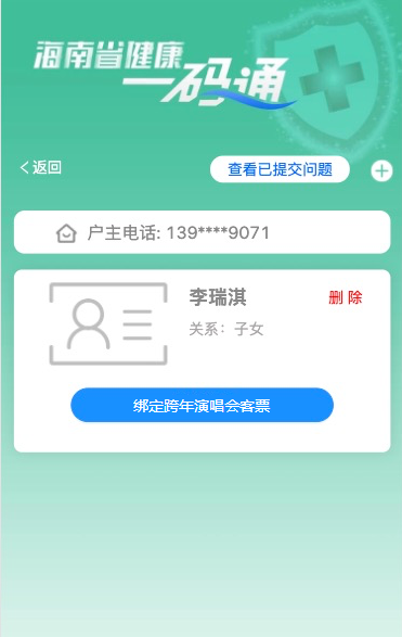 答:可以。完成個人門票信息綁定后,還可以為家人綁定入場碼,操作流程如下: