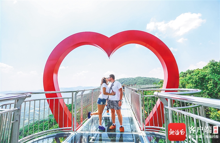 外國(guó)游客體驗(yàn)呀諾達(dá)景區(qū)高空玻璃棧道。 武昊 攝