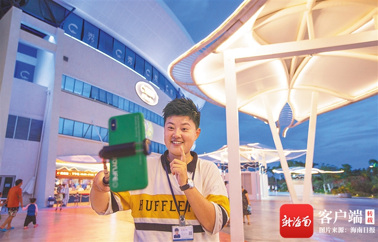 導游沈一笑在三亞·亞特蘭蒂斯直播。 海南日報記者 武威 攝