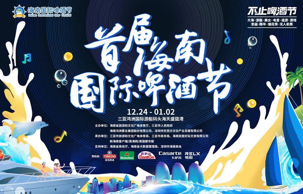 首屆海南國際啤酒節由海南省旅游和文化廣電體育廳、三亞市人民政府、海南鴻洲置業集團股份有限公司、深圳市東西方文化產業發展有限公司共同主辦,三亞市旅游和文化廣電體育局、三亞市商務局、海南就是好玩文旅有限公司、新海南客戶端、南海網、南國都市報共同承辦,并由海南省商務廳、海南省大數據管理局、深圳市海南商會作為支持單位,華潤雪花啤酒作為本次活動贊助商。