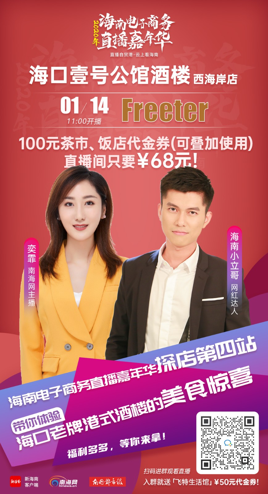 新海南客戶端、南海網、南國都市報1月13日消息(記者 吳興)你期待在海口趕赴一場有港式早茶的“約會”嗎?在熱鬧茶樓中,和家人朋友感受暢聊的快樂。1月14日上午11點,南海網攜飛特生活館推出系列探店直播第四站,將走進海口知名老牌酒樓壹號公館(西海岸店)。屆時,南海網主播奕霏和海南網紅達人小立哥將帶領大家,感受古典美與現代潮流激情碰撞的就餐環境,品嘗酥糯百合醬鳳爪、鮑汁鵝掌等特色港式美食,并向大家推出68元抵100元的茶市、飯店代金券(可疊加使用,不包含酒水、打包盒),讓你優惠享不停,直播間福利多多,記得準時觀看。