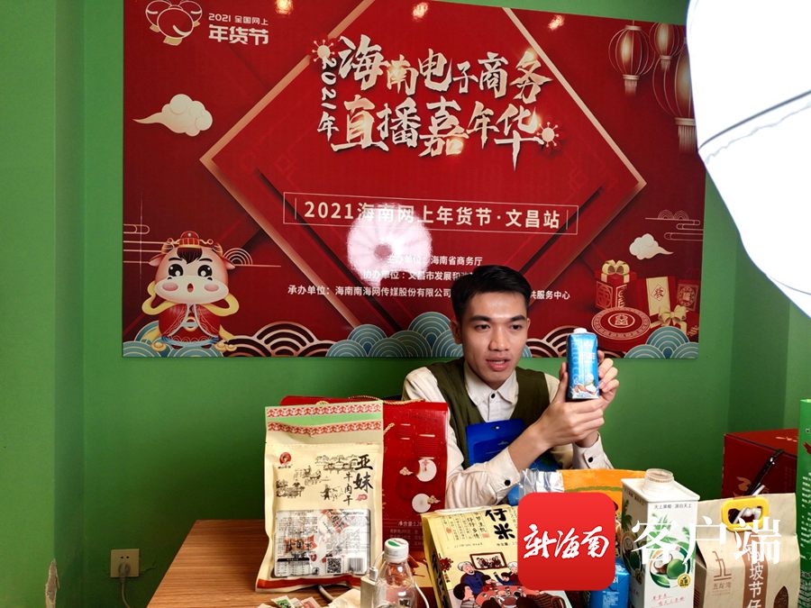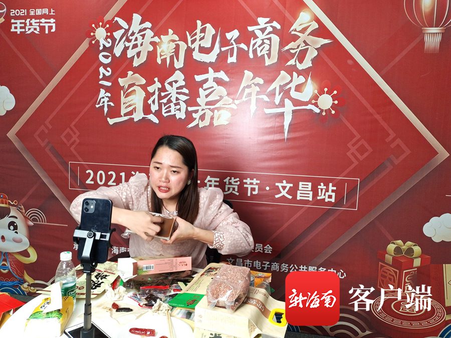 海南本土網(wǎng)紅“七七”為文昌精選年貨代言。