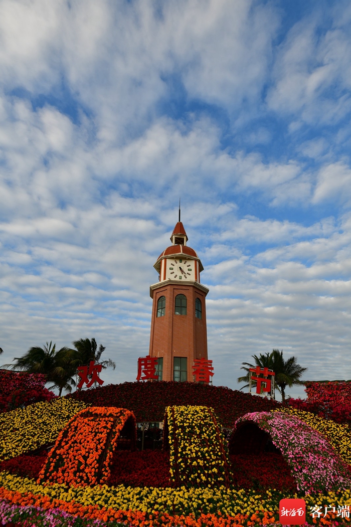 新海南客戶端、南海網、南國都市報2月8日消息(記者 陳衛東)春節前夕,綠化工人將??谖骱0稑酥拘越ㄖ姌茄b扮一新,花叢中的“歡度春節”幾個紅字格外醒目,十余種時令鮮花相輔相成,五彩繽紛。市民游客紛紛駐足欣賞,拍照留念。
