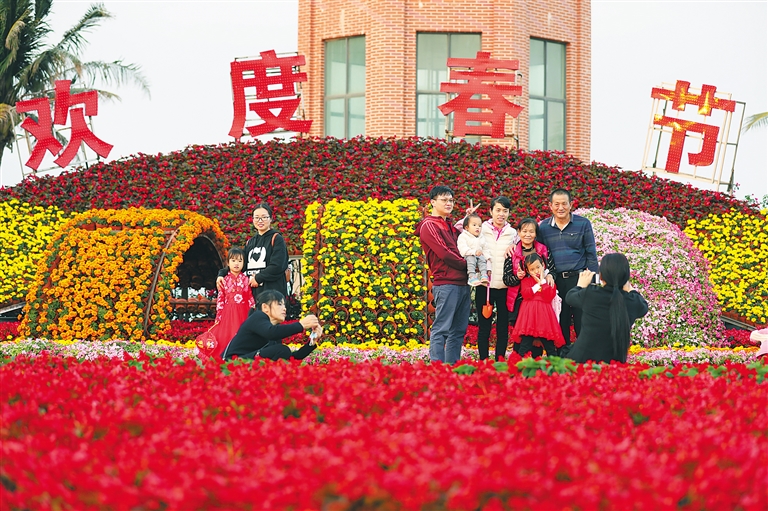 2月12日,海口西海岸觀海臺景點,游客在拍照留念。(海南日報記者 李天平 攝)