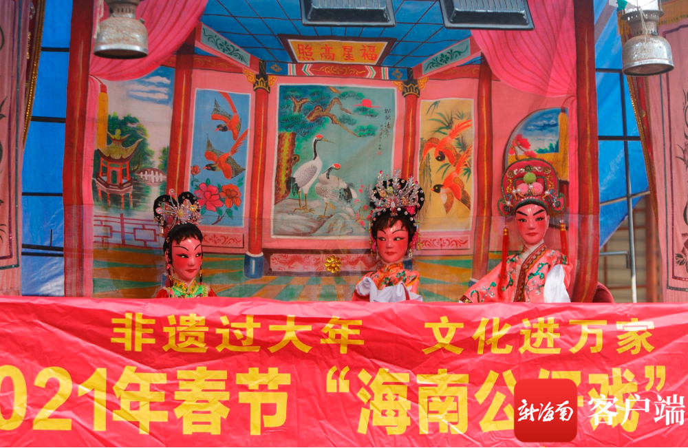 海口騎樓老街敲響海南公仔戲演出的鑼鼓,讓市民游客感受非遺文化的濃濃年味。記者 汪承賢 攝