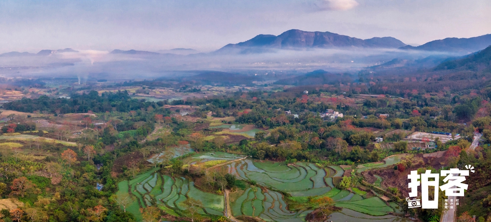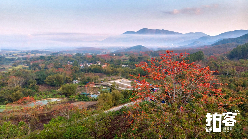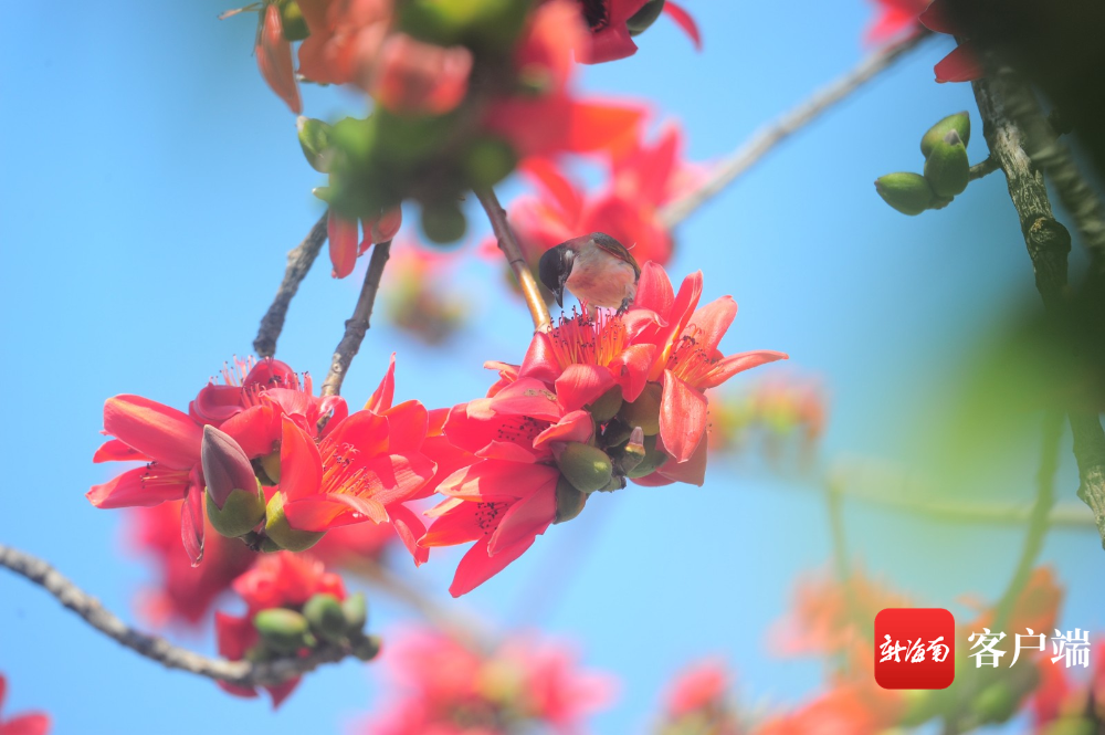 木棉花、風鈴花、三角梅在枝頭舞動,