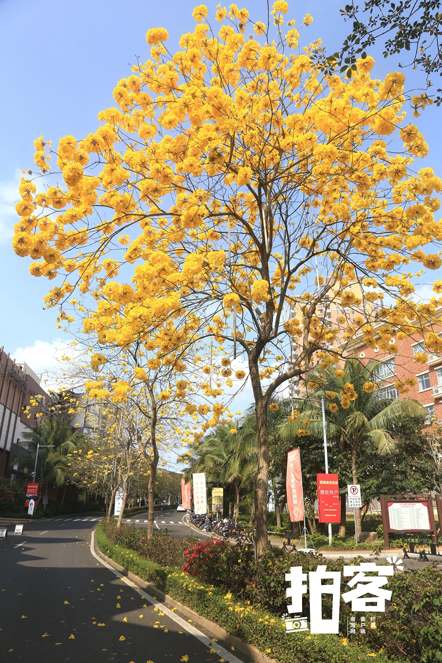欣賞那里盛開的黃花風鈴花與煙火花相映的美景。