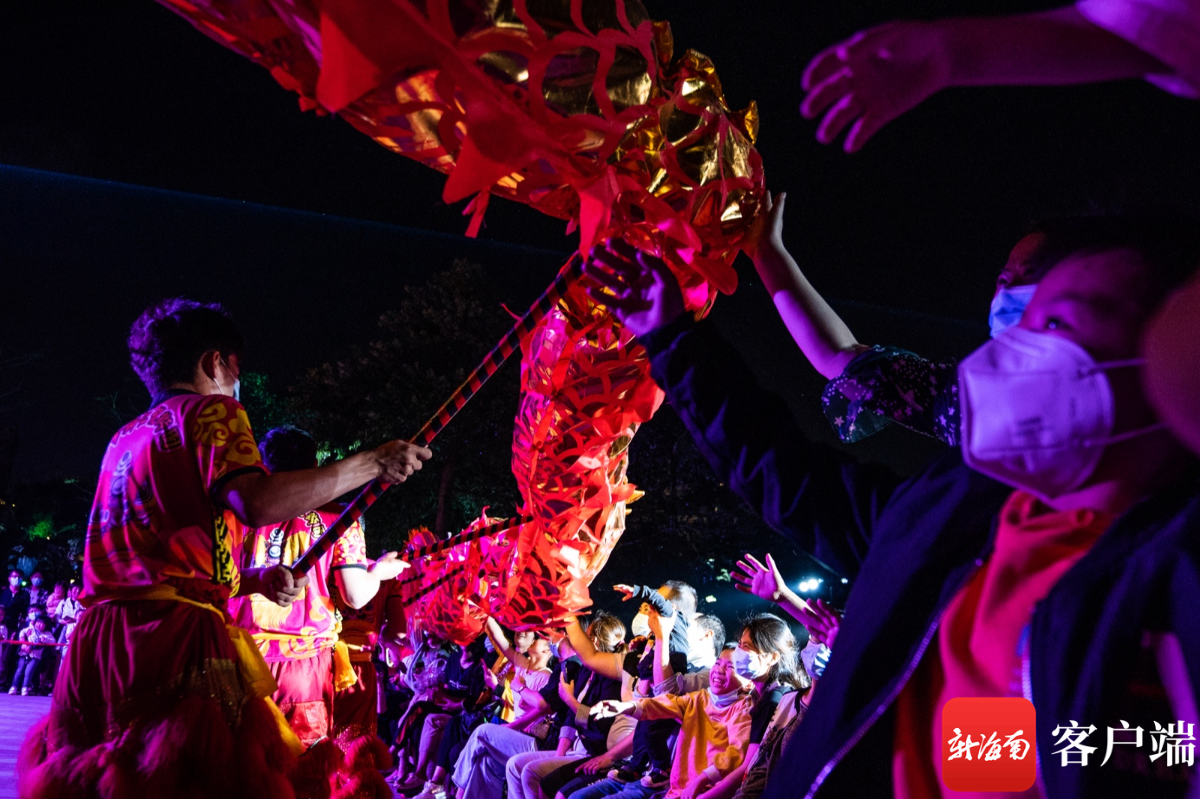 3月14日晚,海口市五公祠舞龍隊(duì)伍身披彩衣,展現(xiàn)蛟龍?jiān)贫寺危屳d著吉瑞呈祥的美好祝愿躍然眼前。記者 李昊 攝