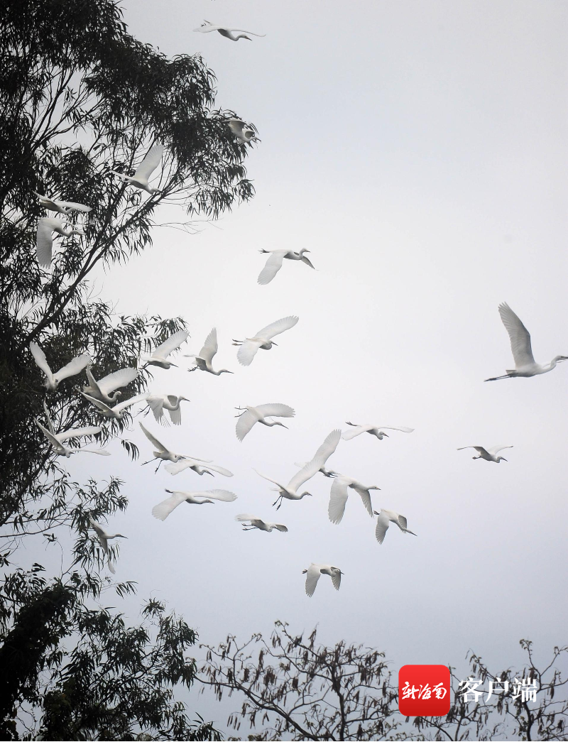 3月23日,三亞學(xué)院白鷺溪畔,成群結(jié)隊(duì)的白鷺飛舞嬉戲。記者 沙曉峰 攝