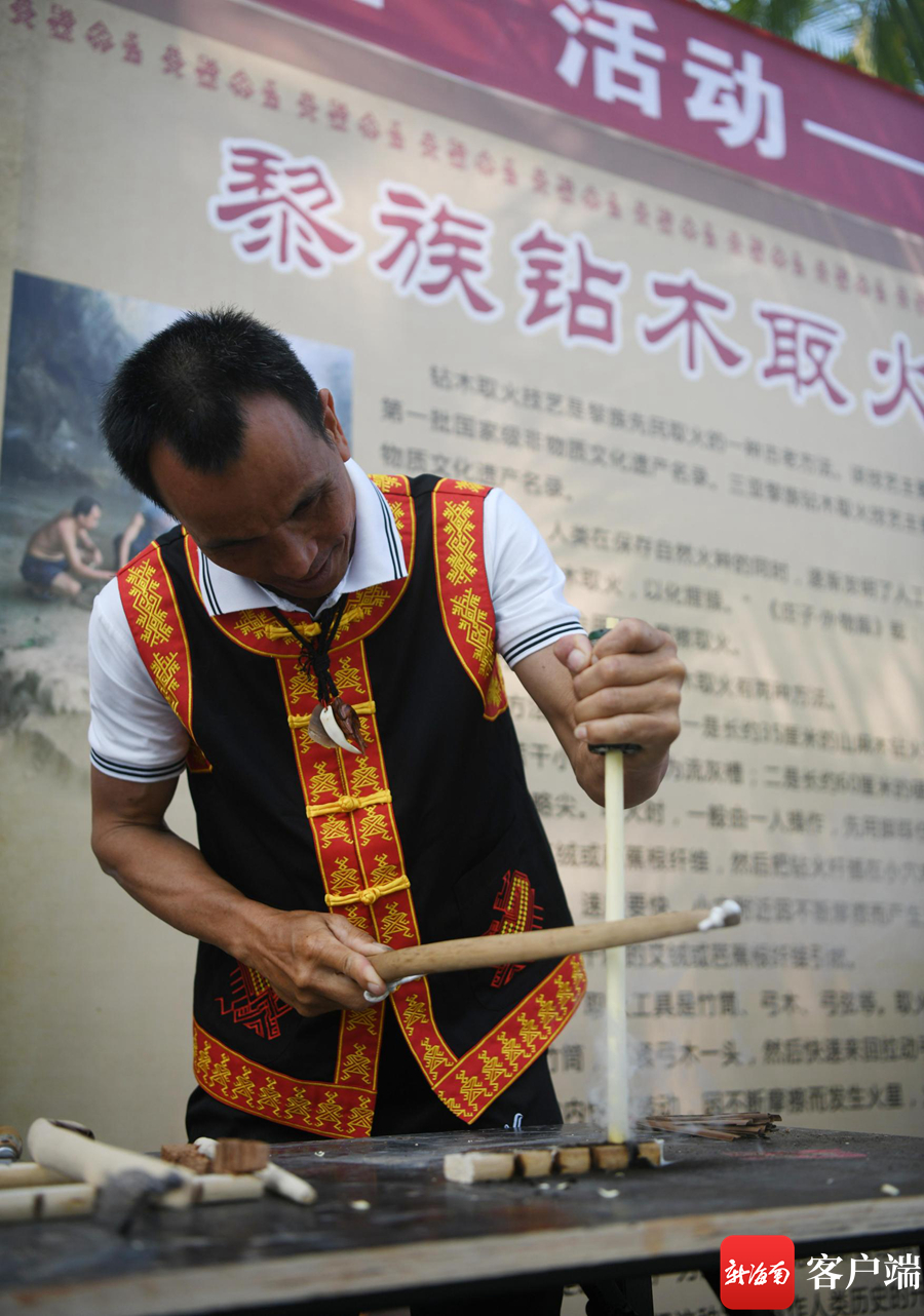 4月13日,“非遺”項目《黎族鉆木取火》展示。記者沙曉峰攝