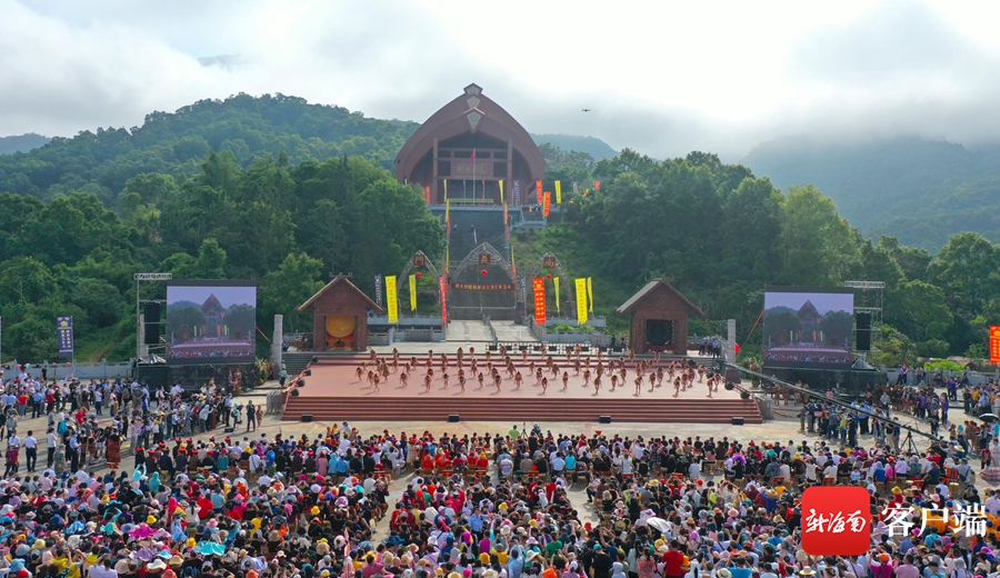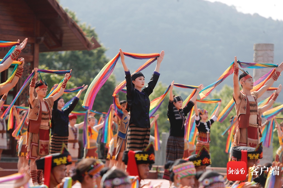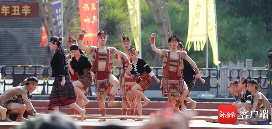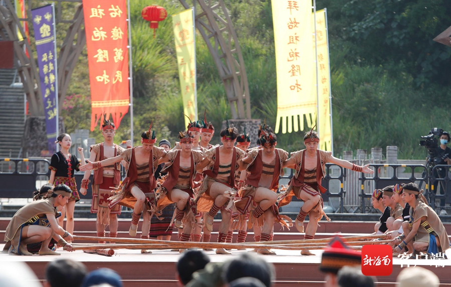 五指山市隆重舉行2021年祭祀袍隆扣大典,大典演出現(xiàn)場(chǎng)。記者 汪承賢攝