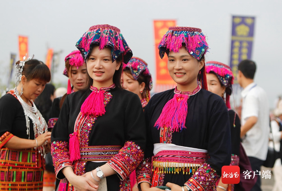 身穿黎族服飾的市民參加五指山市2021年祭祀袍隆扣大典。記者 汪承賢攝