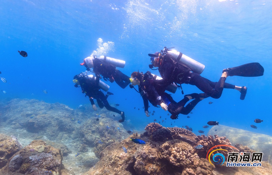 游客在陵水分界洲島旅游區海底體驗潛水。海報集團全媒體中心記者武威 通訊員童國強 攝