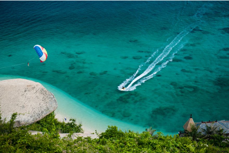 海上拖傘推薦:三亞蜈支洲島、三亞亞龍灣、三亞西島等。