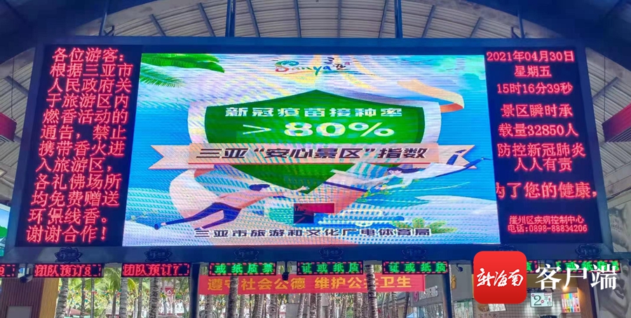 三亞景區(qū)的大屏幕上顯示“安心景區(qū)”指數。記者沙曉峰攝