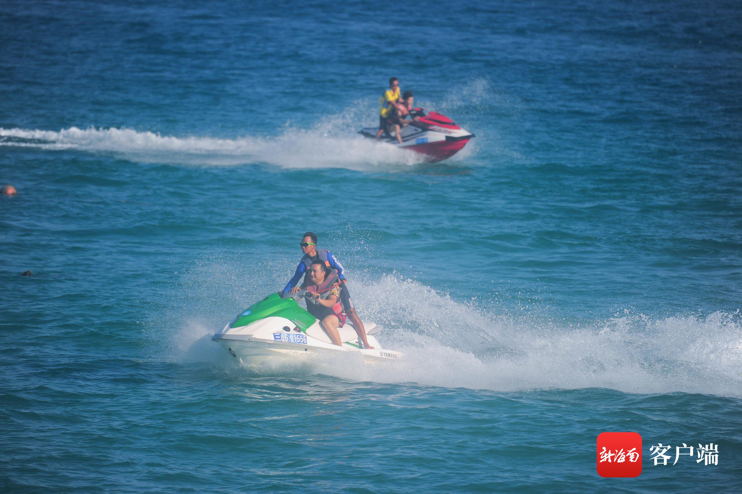 5月2日,游客在三亞乘坐摩托艇玩海。記者沙曉峰攝