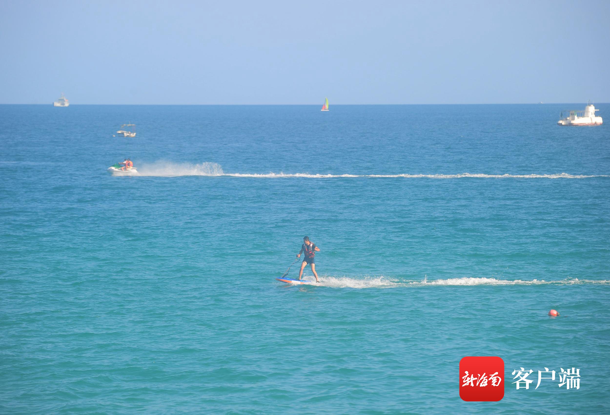 5月2日,游客在三亞體驗動力沖浪板。記者沙曉峰攝