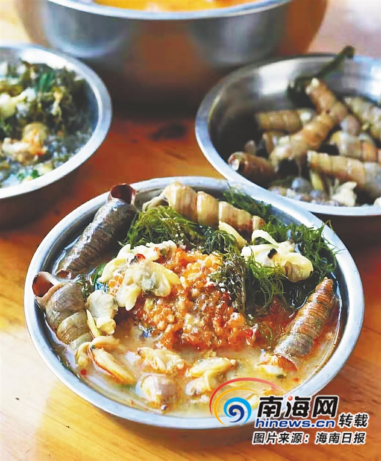 海南粉、豬腳飯、辣湯飯、海口八寶飯、瓊式燒魚肚、肉末黑豆腐煲、石山乳羊、土窯黃皮雞、牛腩飯、甜薯奶、九層糕、地瓜湯、清補涼等