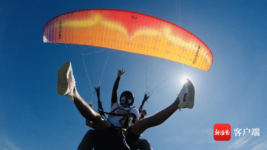 ?游客在海南陵水紅角嶺山頂體驗低空飛行。 海南紅角嶺航空飛行營地供圖