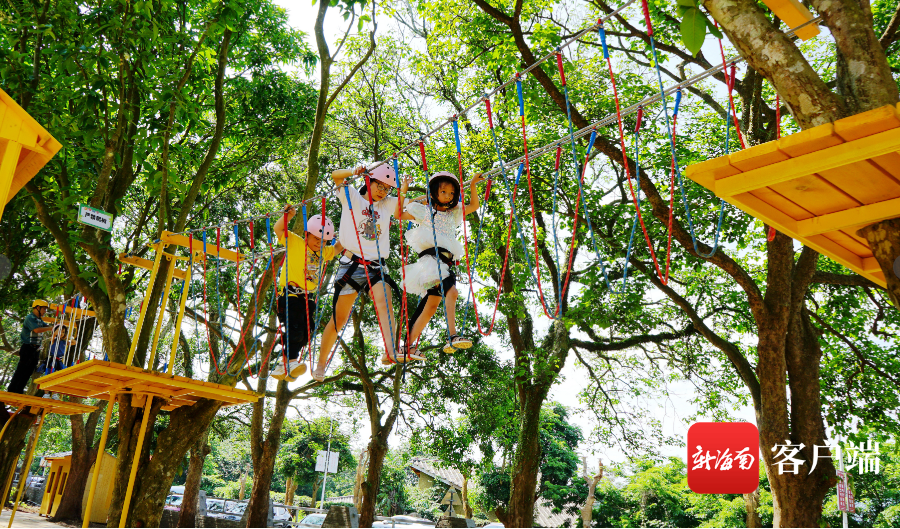 游客在瓊海白石嶺景區(qū)體驗“叢林穿越”。記者 蘇靚 攝