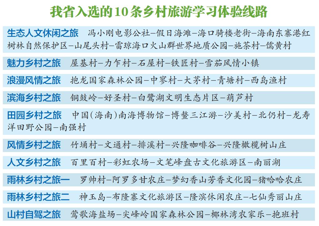 全國(guó)300條鄉(xiāng)村旅游學(xué)習(xí)體驗(yàn)線路公布 海南10條線路入選
