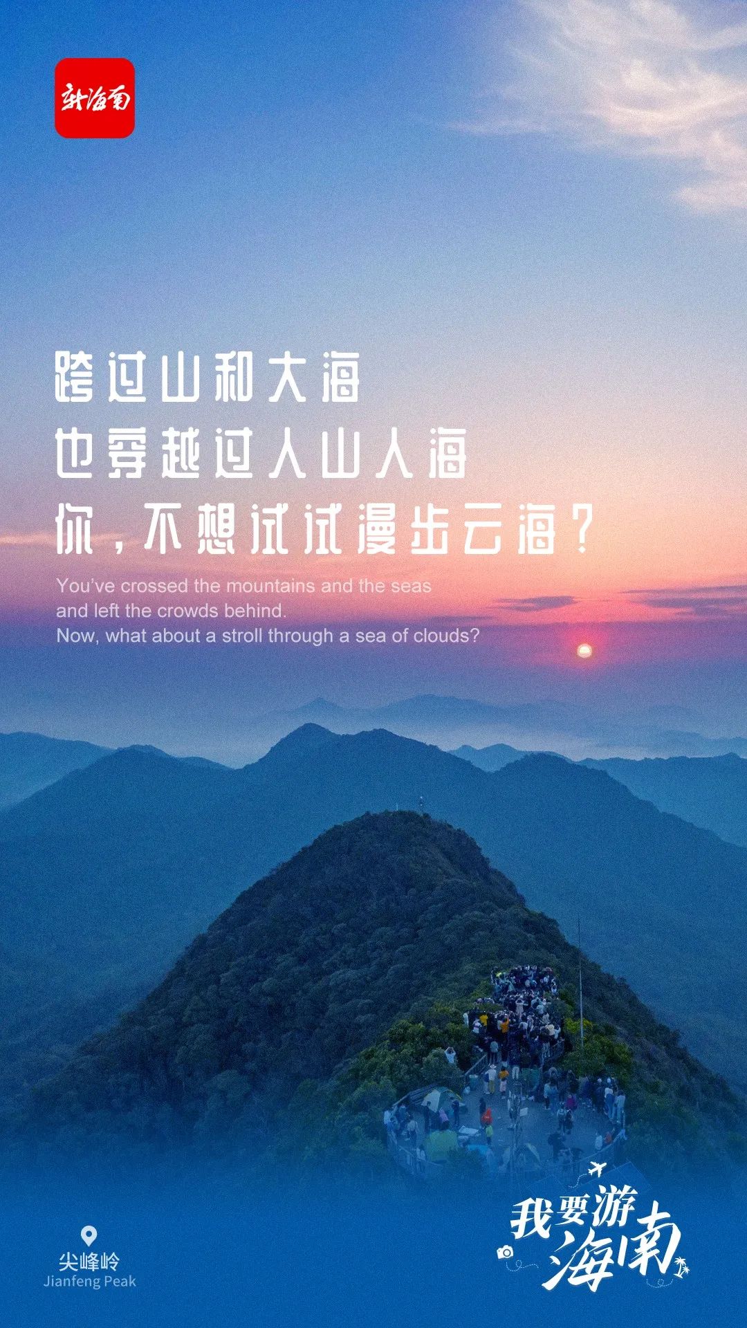 海南日報海口5月19日訊 (海報集團全媒體中心記者吳春媚)5月19日是中國旅游日。新海南客戶端、南海網(wǎng)、南國都市報、海南國際傳播中心聯(lián)合推出創(chuàng)意海報《我要游海南》,盤點海南景色亮麗的寶藏打卡地。這組海報以富有畫面感的“三行情詩”文案、高清精美大圖,充分展現(xiàn)海南旅游的魅力。