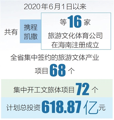 記者從省旅文廳獲悉,2020年6月1日以來(lái),共有攜程、凱撒等16家旅游文化體育公司在海南注冊(cè)成立。全省集中簽約的旅游文體產(chǎn)業(yè)項(xiàng)目68個(gè),集中開工文旅體項(xiàng)目72個(gè),計(jì)劃總投資618.87億元。