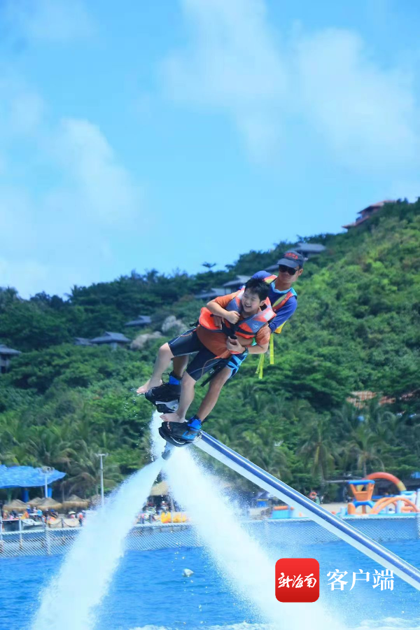 市民游客攜家?guī)Э趤淼胶?诩偃蘸蚵缴碁⒒虺孙L破浪。海口日報記者 石中華 攝