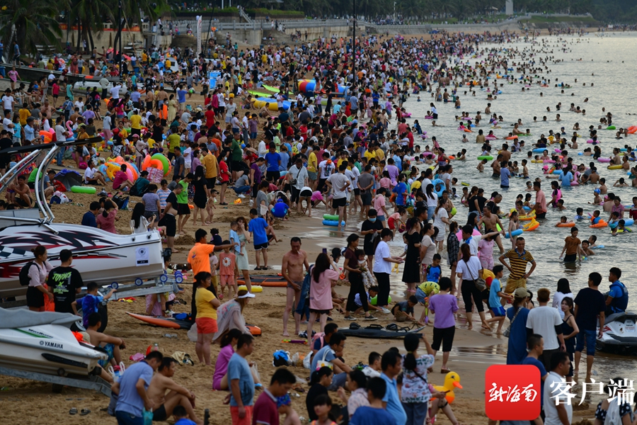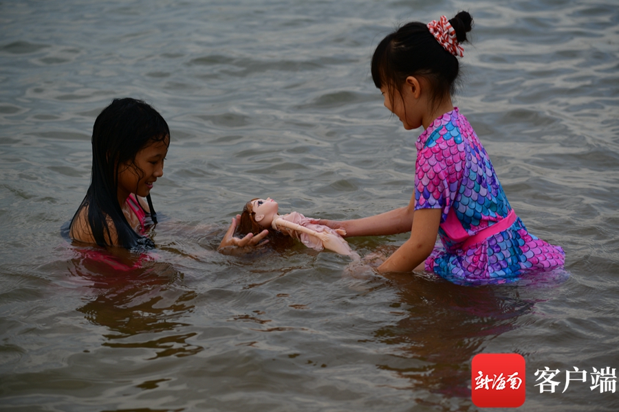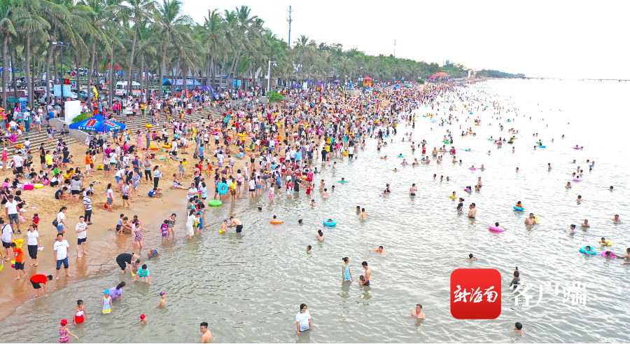 組圖 | 現場直擊!海口市民游客假日海灘花式“洗龍水”
