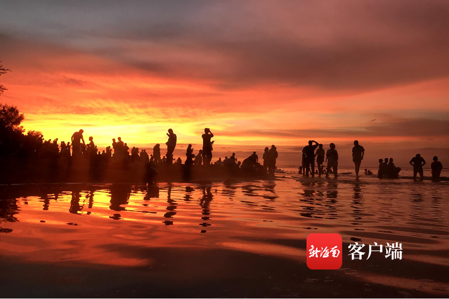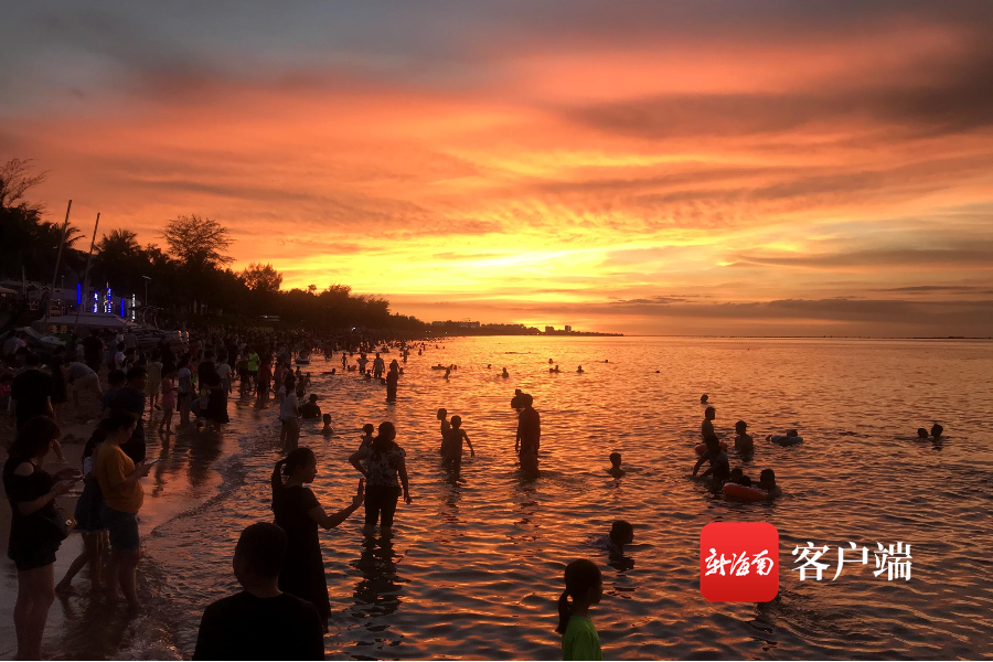 新海南客戶端、南海網、南國都市報6月14日消息(記者 陳衛東)6月14日端午節,市民游客在海口西秀海灘游玩。新海南客戶端、南海網、南國都市報記者實拍海口西秀海灘落日美景,當太陽緩緩落下,晚霞染紅了天空。