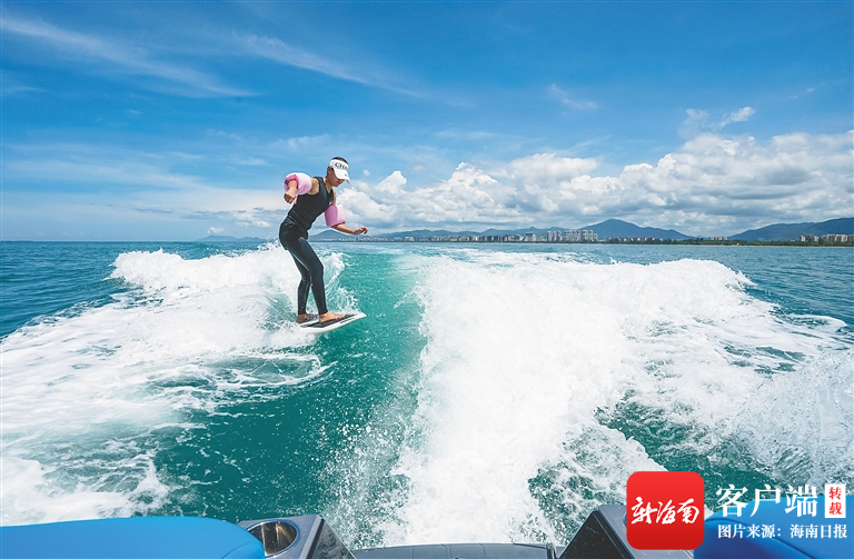 “以往,沖浪愛好者只能等自然海浪,玩沖浪的時間和地域都受到限制;現在,通過造浪艇人工造浪,人們實現沖浪自由。” 海南國際游艇交易中心負責人介紹,尾波沖浪滑水項目2018年9月引進海南,真正發展是2020年6月,現在三亞尾波沖浪俱樂部已經發展到20多家,勢頭很猛,不少游客為玩尾波沖浪滑水項目而到三亞旅游,今年春節與五一假期,三亞造浪艇出現一艇難求現象,價格比平日增長近1倍。