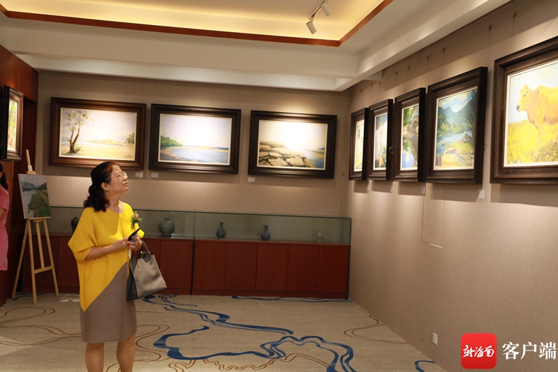 6月26日,三亞市油畫家協會慶祝建黨100周年作品展在壹舍藝術館開展。記者 利聲富 攝