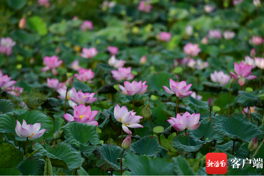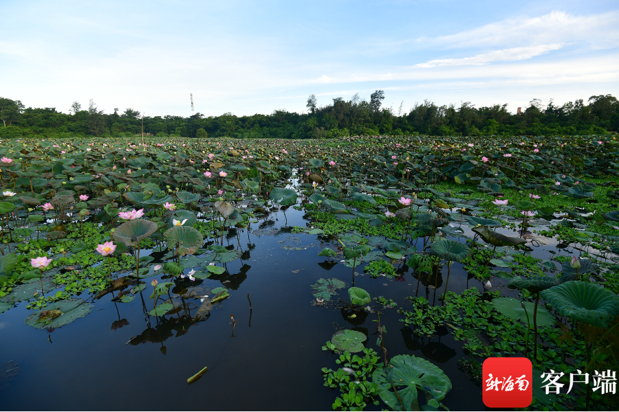 新海南客戶端、南海網、南國都市報6月28日消息(記者 陳衛東)盛夏,正是荷花盛開的季節,海口五源河國家濕地公園里,比足球場還大的一片荷花正在盛開,荷葉間藏有小鳥,水面有鴨子,花朵上蜜蜂飛舞。據種植荷花的村民說,今年是20年來荷花最好的一年。