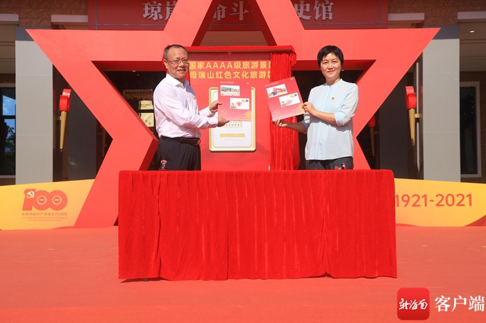 儀式上,海南省旅文廳和定安縣有關(guān)領(lǐng)導(dǎo)共同為母瑞山紅色文化旅游區(qū)國家4A級旅游景區(qū)揭牌,并為母瑞山成為國家4A級旅游景區(qū)后的第一張明信片蓋章留念。