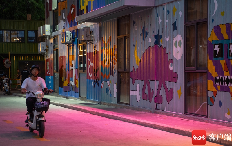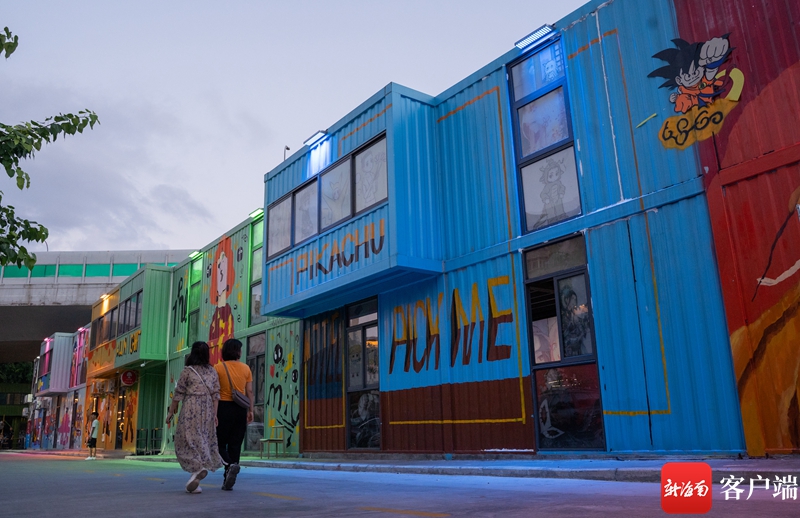7月12日傍晚,記者來到位于海口市海秀中路的網(wǎng)紅打卡點——海口僑中里文化街箱集市。這條以動漫元素為主題的街區(qū),主要設施設備全部采用集裝箱設計,通過噴繪等方式將集裝箱打造成為富有動漫元素的空間,吸引眾多市民游客前來打卡。