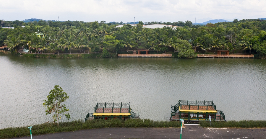 7月18日,全媒體采訪團來到瓊中白鷺湖度假區參觀采訪。記者 李昊 攝