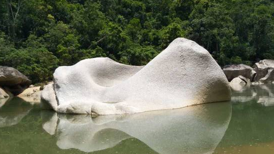 石頭高過兩個人頭,寬及兩手展臂,長至兩人身長,中間可站立數人;凹下之處可容水,但久置會被石頭吸收耗盡,潑灑在石頭上的水,稍后也被蒸發,石頭永遠保持其潔白光亮,純潔無瑕,很多情侶喜歡在此海誓山盟,表白喜結良緣、見證純潔愛情,共守白頭偕老。