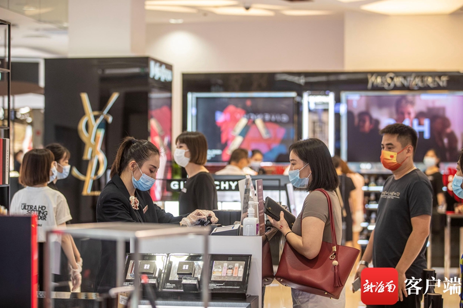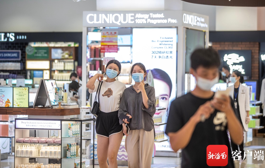 新海南客戶端、南海網、南國都市報8月4日消息(記者 劉洋 通訊員張可)8月4日下午,記者在中免集團海口日月廣場免稅店看到,市民游客佩戴口罩在免稅店內有序購物?,F場工作人員向記者介紹,免稅店制定了多項疫情防控措施,進入免稅店人員必須佩戴口罩出示健康碼和行程碼,并安排專人核查。在店內每個出入口都安裝了熱成像人體測溫儀,實時檢測進店人員體溫。