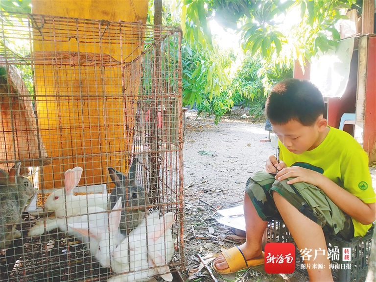 “7月6日,雨天,兔子們都沒有趴下,而是蹲著,真奇怪”“看到我拿著蔬菜走來,兔子們就會激動地跳起來”……這個暑期,周明錦記錄了兔子進食、嬉戲、休息時的狀態(tài)。這份特殊的暑假作業(yè)需要花費許多時間和精力,但他卻樂在其中。