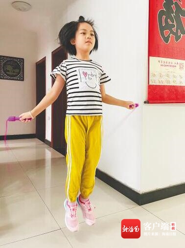 暑假期間,海口市長濱小學二年級學生丁梓軒每天堅持完成老師布置的體育作業(yè),“學校留給我們的書面作業(yè)不多,體育運動是每天必須完成的作業(yè),可以選擇跳繩、跑步或武術操。有時,爸爸媽媽還會陪著我一起跑步,在班級群里拍照打卡,暑假過得很充實。”