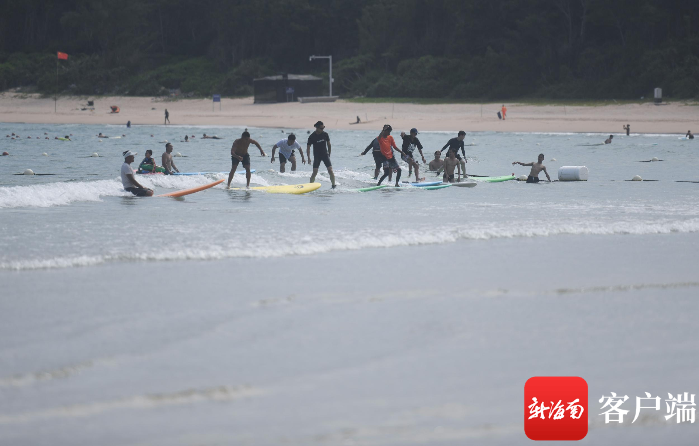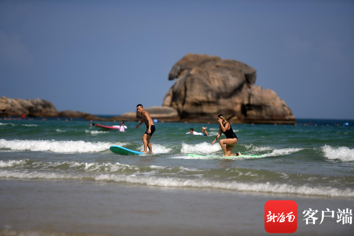 8月11日,游客在三亞后海沖浪。記者 沙曉峰攝
