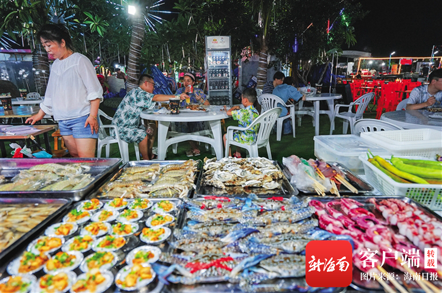 《報告》指出,海鮮是多數三亞消費者夜間購餐的“首選”,海鮮在三亞夜宵中的占比是全國平均比例的14倍。在第一市場夜市,海鮮餐飲店一家挨著一家,瓊式、川味、湘味等口味豐富,游客既可以到店直接點餐,也可以到市場選購海鮮進店加工,多樣化方式全方位滿足著食客味蕾。