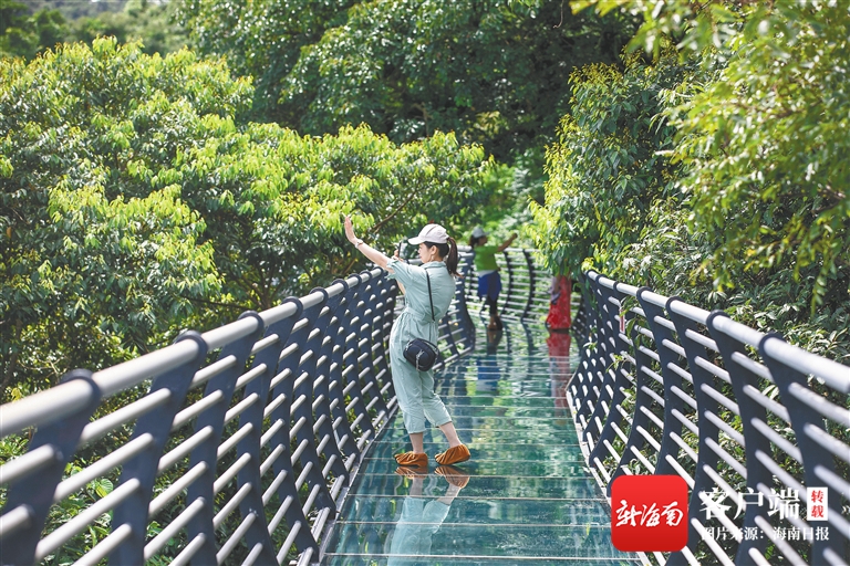 資料圖:近日,在瓊中百花嶺熱帶雨林文化旅游區,游客在樹梢棧道上拍照留念。海南日報記者 李天平 攝