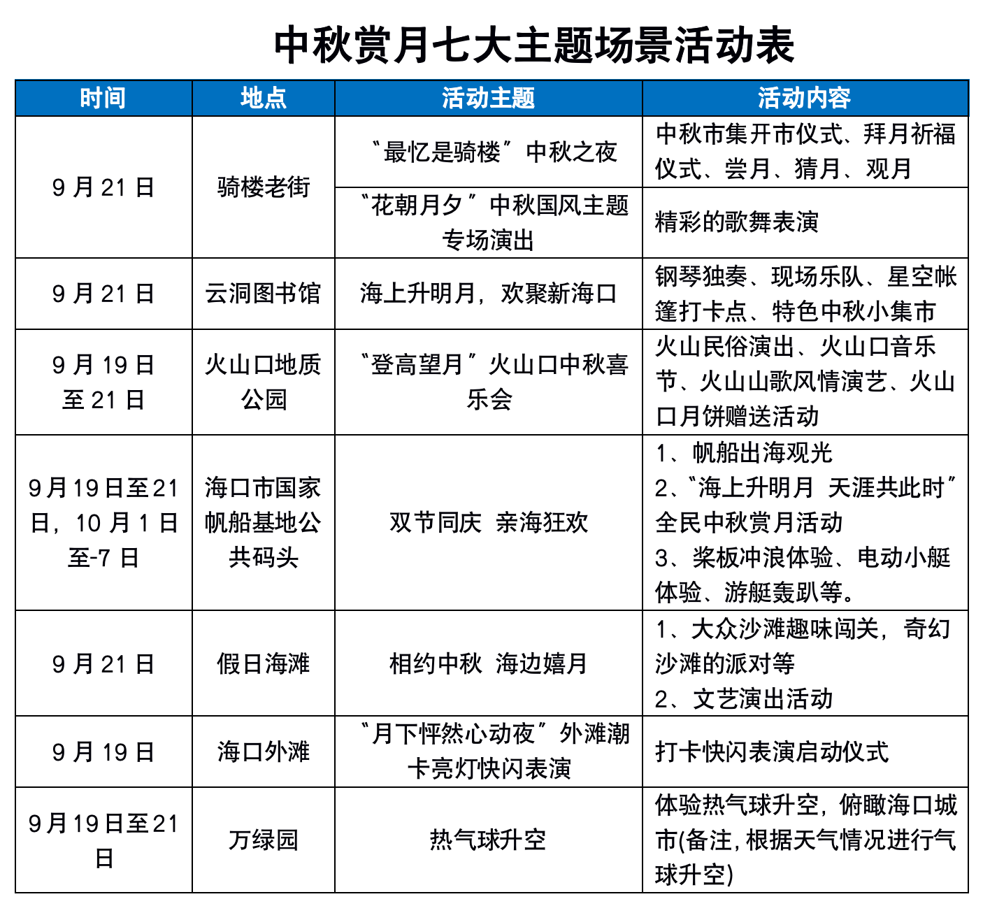 海口七大主題場景活動 中秋賞月新熱“潮”