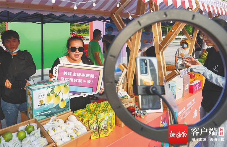 商戶在進(jìn)行直播。海南日?qǐng)?bào)記者 武威 攝