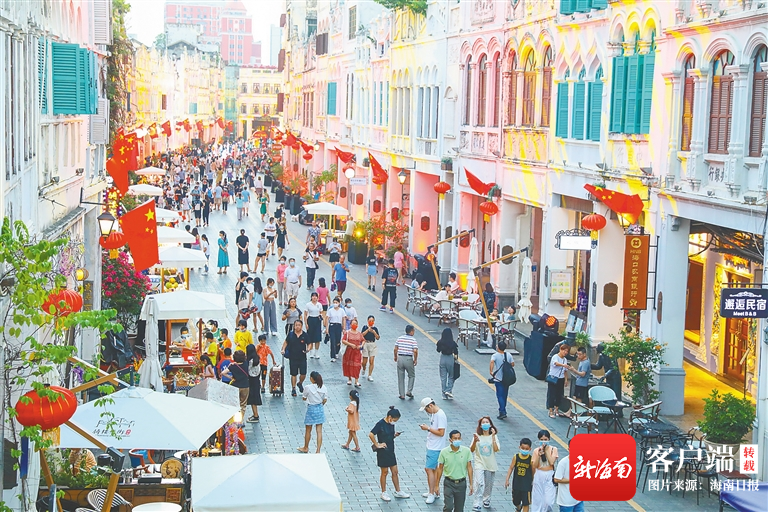 10月1日,??隍T樓老街,一幕幕喜慶主題畫面多姿多彩,眾多市民游客前來“打卡”。海南日報記者 張茂 攝